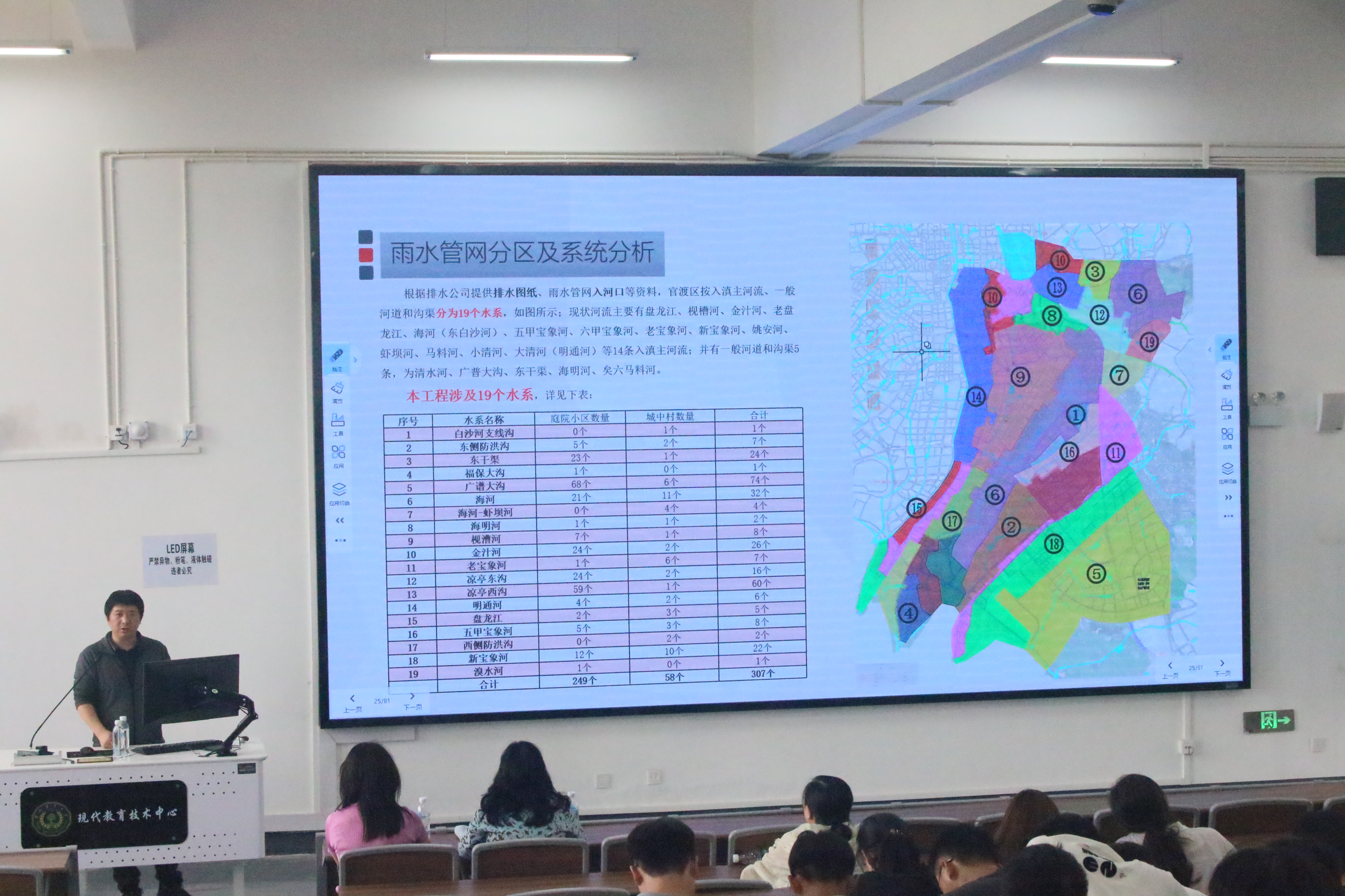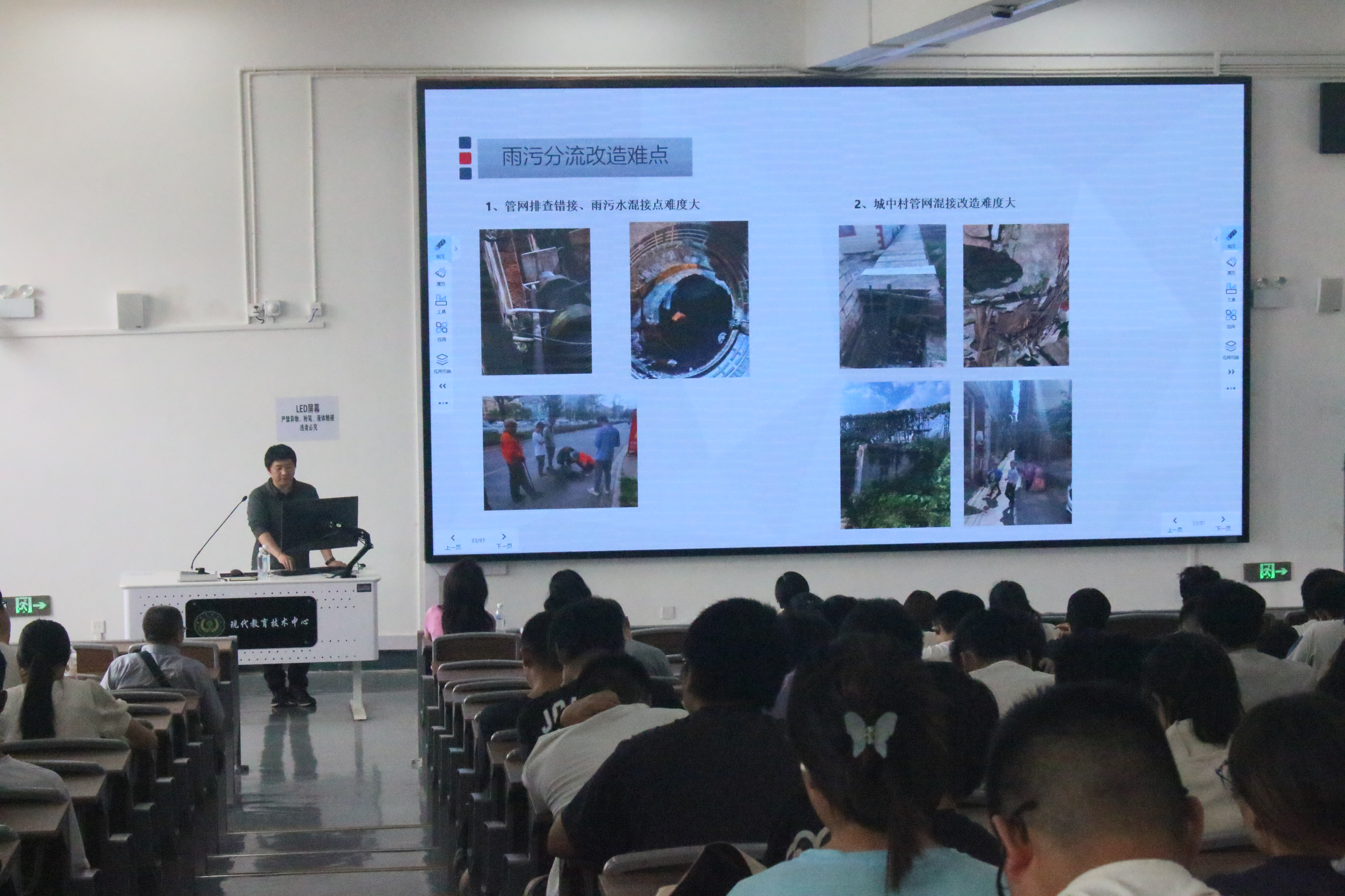 报告会上,白立黎工程师结合已建工程详尽的讲解了雨污分流项目实施的重要性、项目目标、设计总体思路、设计方案等难点,通过官渡区2022-2023年二环外雨污分流改造工程向师生们详细介绍了雨污分流改造项目的设计要点和难点,让同学们和老师们对该工程有了更深层次的理解。