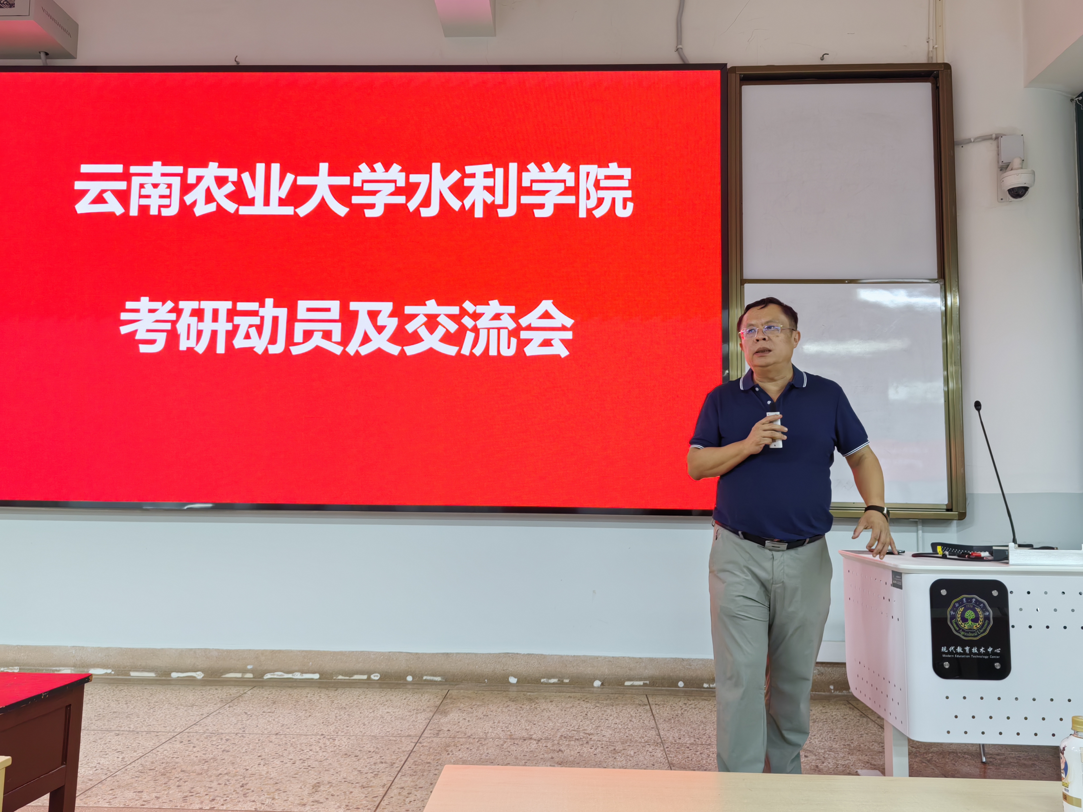 李靖经理针对农水专业和水卓班开展了考研动员工作,李经理指出,近年来考研趋势日益严峻,同学们必须坚持不懈、努力奋斗,争取顺利考取研究生,实现自我提升。